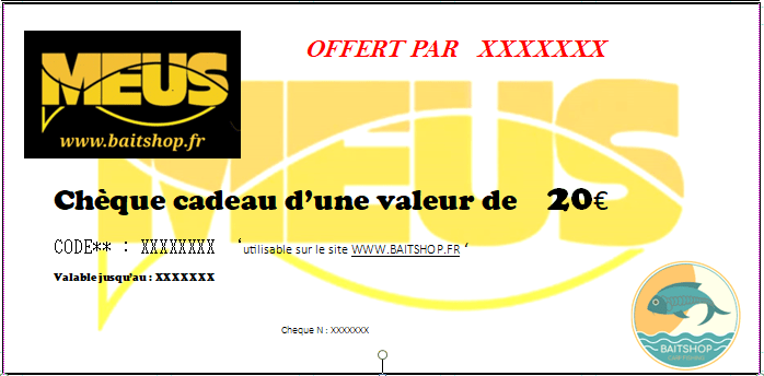 Chèque cadeau valable sur le shop d’un montant de 20€